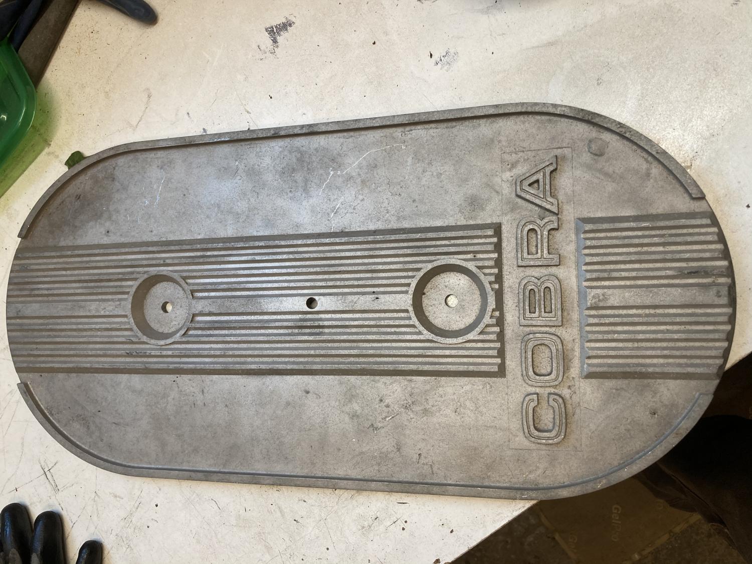 If somebody has an original 1x4bbl sheetmetal base, I have an original early ‘68 3-hole cast aluminum Cobra air cleaner lid. We can make a matching set