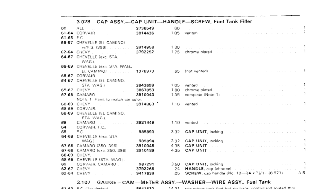 |  NOS 1967 1968 Camaro 3910045 SS 350 396 gas cap
