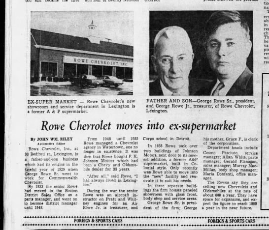 Anyone remember anything about or anyone who worked at Rowe Chevrolet 39 Bedford Street Lexington, Massachusetts?