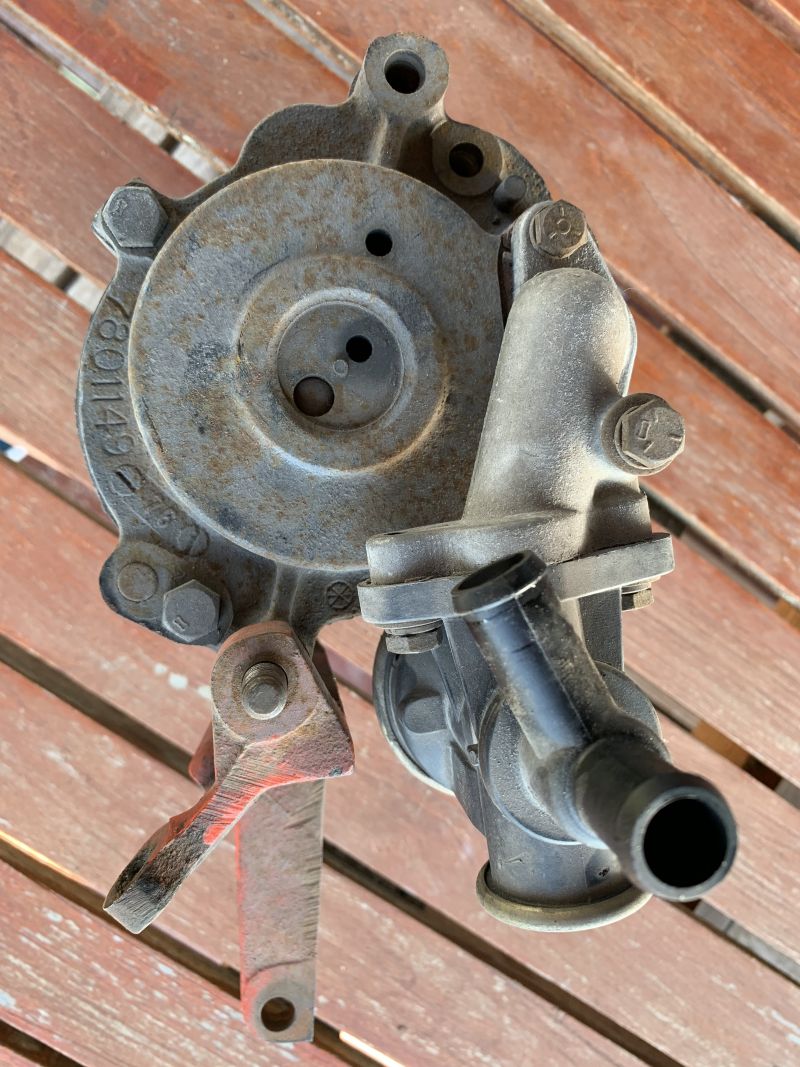 7801149 smog pump, spins freely. Has black plastic fan. Pump body cast end cover is dated '76' for 76th day. Machined area on pump side has assembly date code of 16721S which decodes to 167th day of 1972, 1st shift, S is the pump configuration (no pressure relief valve). Included is everything attached to the pump in the pictures: black fan, pulley which is stamped 3917234AL, diverter stem and plastic valve, and mounting bracket. The long bolt on the mounting bracket is missing the nut. Please also note the pulley has some minor damage as shown - the outer lip has a bend, am sure it could be straightened okay but disclosing that issue up front. Asking US$160.00 shipped, via PayPal F&F please. It's quite heavy, so if you just wanted the pump and not all the other parts, that should bring the total down a little.