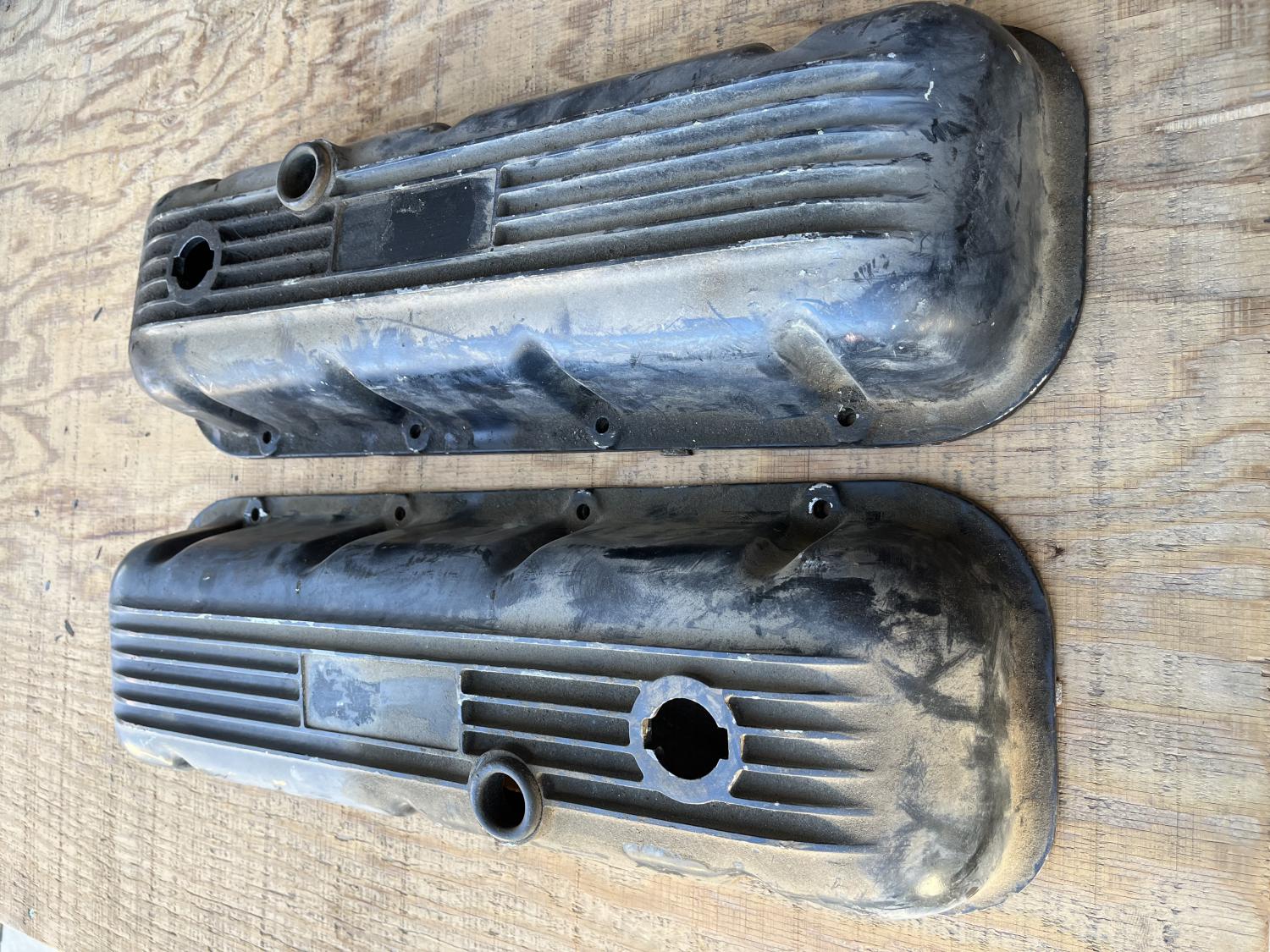 3 sets available here: 1. Cal-Custom originals - the so-called 10-fin ones when they were still made in USA - Carson. condition as shown - could be runners now, but could also be polished. With drippers. $100 plus shipping. 2. unknown manufacturer, Ansen? 6-fin - used as shown with gaskets, but I'd replace them before use. $60 plus shipping. 3. Same 6-fins with a bit more patina / work needed, nothing fatal, but a bit crusty; the black krinkle finish is pealing badly. $40 plus shipping. Cheers all, Anthony |