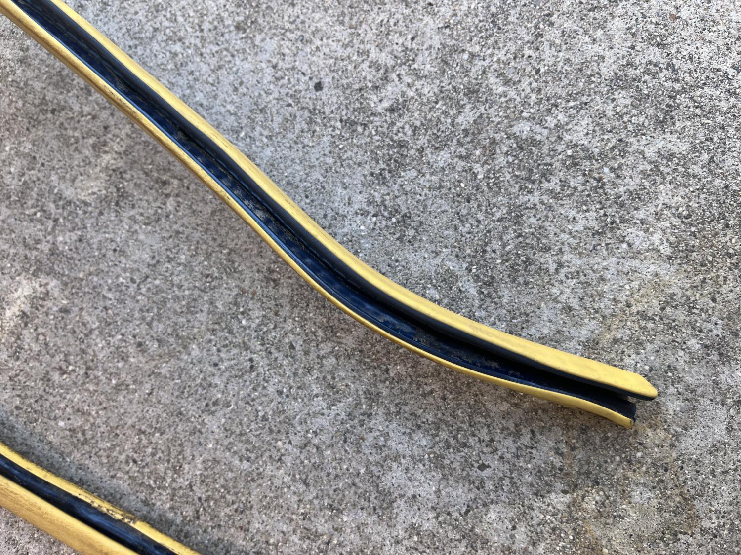 I have a pair of L&R original yellow wind lace strips for sale - they were off an old local barn find. They are intact and genuine and have the often broken / missing top tabs present. The inside material appears to be blue; but I am convinced that these are original and genuine factory assembly line yellow units. It's the pinch weld material that is blue, the outer plastic is molded yellow. They are suitable for a survivor / driver type car that requires original pieces. See detailed photos below for full picture. $300 PPG plus shipping. Cheers all, Anthony |