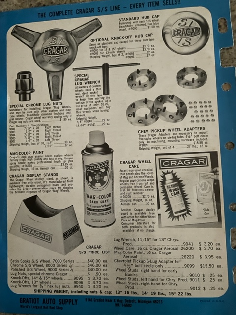 1967 Cragar S/S 4 page catalog. Original not reprint. Nice Shape for 55 years old. Plus postage. $35.00