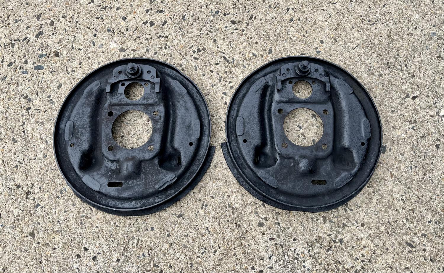 Original GM 10 & 12 bolt rear brake backing plates for 9.5” drums.  $50 plus shipping.