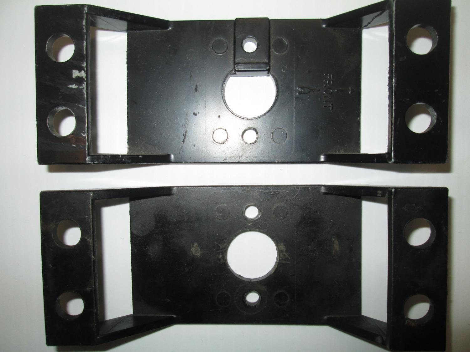I recently was taking parts off an early cowl induction hood from a Sept 69 built chevelle ss.I noticed the actuator bracket looked different so I went and got a NOS one I had and compared-as you can see the original early one has a full circle in the middle while the nos one has a stop added and also has"Front" and arrow stamped on it while the original doesn't. Talking to Rick Nelson he says the stop was added late 69 year to stop the flapper from opening too far by stopping the arm on the actuator-without the stop the flapper door can also close too far and not be flush with the hood-always learn something new on these old cars!!!!