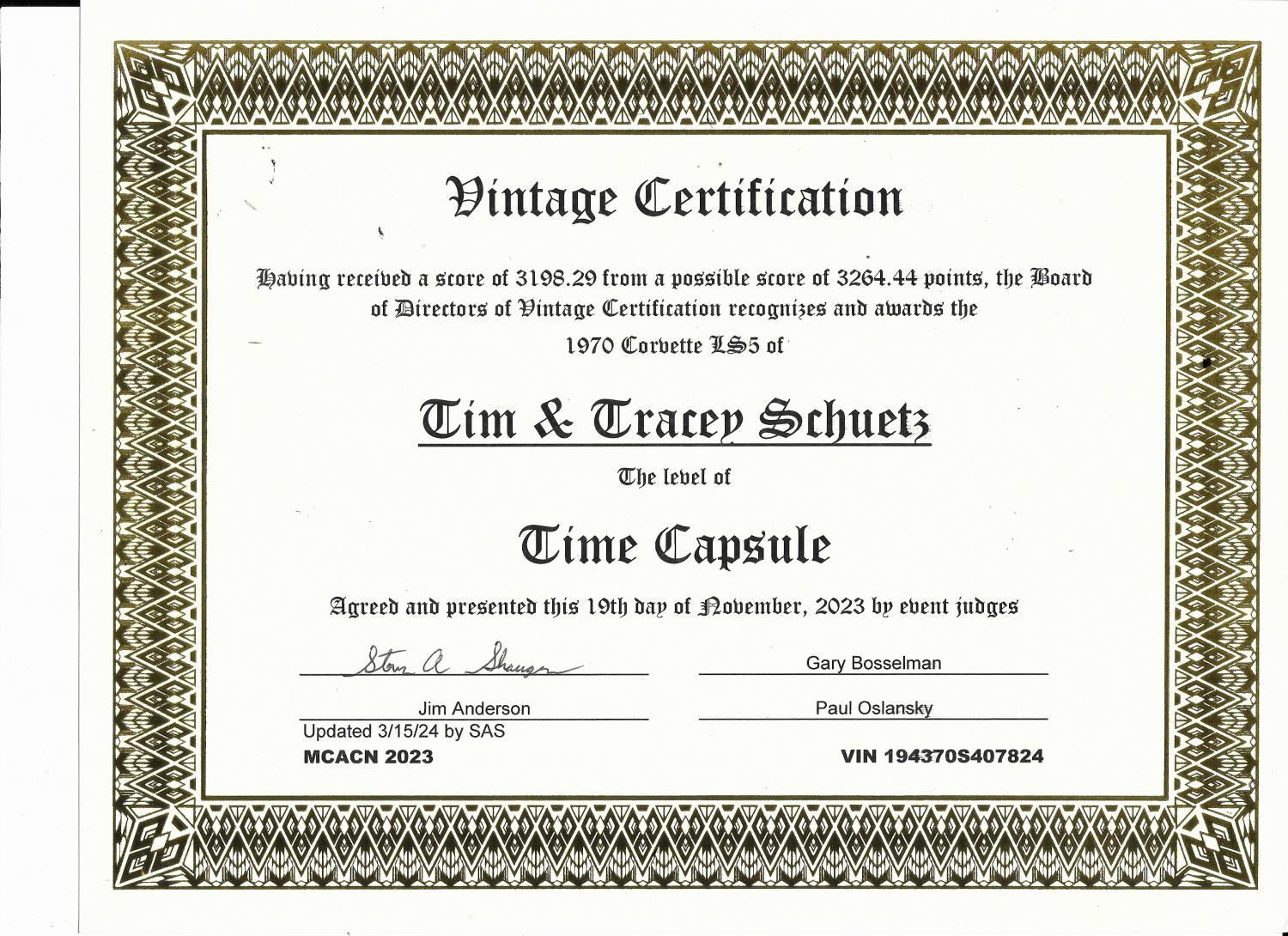 Steve Shauger The Supercar Registry www.yenko.net Vintage Certification™ , Providing Recognition to Unrestored Muscle Cars. Website: www.vintagecertification.com |
