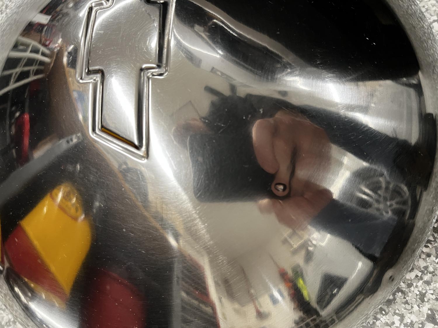 71-72 Chevelle, Nova, Camaro dog dish caps - maybe correct for other years/Chevrolet models as well. Minor discoloration and one small repairable ding as shown in pictures. Perfect for a driver