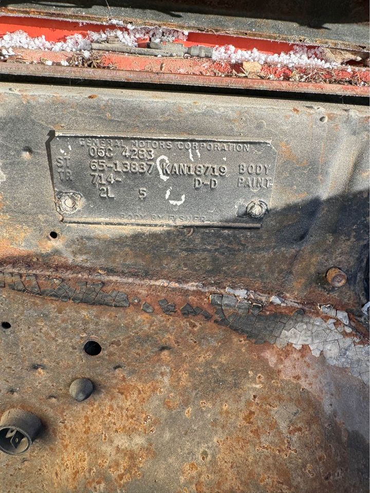 The engine suffix code for the 1965 Chevelle COPO 396/425 engine is known, and Tonawanda records show that one (1) such engine was built. And it went in the black 300 post sedan COPO car that has been discussed on here before, which is heavily documented. Not one thing pictured in that auction suggests that car was ever a big block. There are small block engine mount stands right there in the one under-hood picture. And the crayon # on the firewall looks like 8375 to me, which was probably 38375 which means nothing more than an SS V8 coupe. When someone trying to claim such a story does not bother to post any pictures of the VIN tag, trim tag, or engine deck stamp, or the supposed documentation, then either they know it is a bogus claim already, or they have no knowledge about how one would need to substantiate such a claim in the first place. Either way, I see no chance it is what they are claiming. It does look like a pretty darn good body though ... but not at that price.
