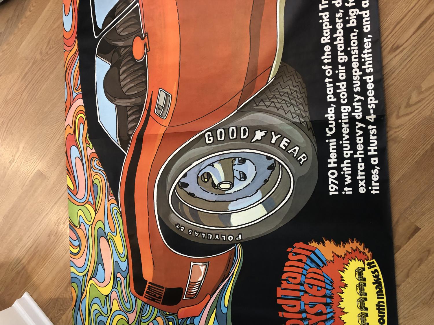 These were dealership and or road side pieces. Very few survived. I've been fortunate enough to own two of these ultra rare Hemi pieces. A must have for the Mopar or memorabilia collector. Dims are huge - ideal for a collection centerpiece. 12.5ft x 4.25 ft. Condition is original and unrestored. No touch up. Great colors too. One small rip on lower RH edge otherwise near mint. If interested, I can have the unit professionally linen backed through a museum archive grade process at an additional cost. I'm asking $7000 OBO shipped and insured to your door. One sold @ Mecum Kissimmee 2023 for $8300. Thanks, Dan [email protected]