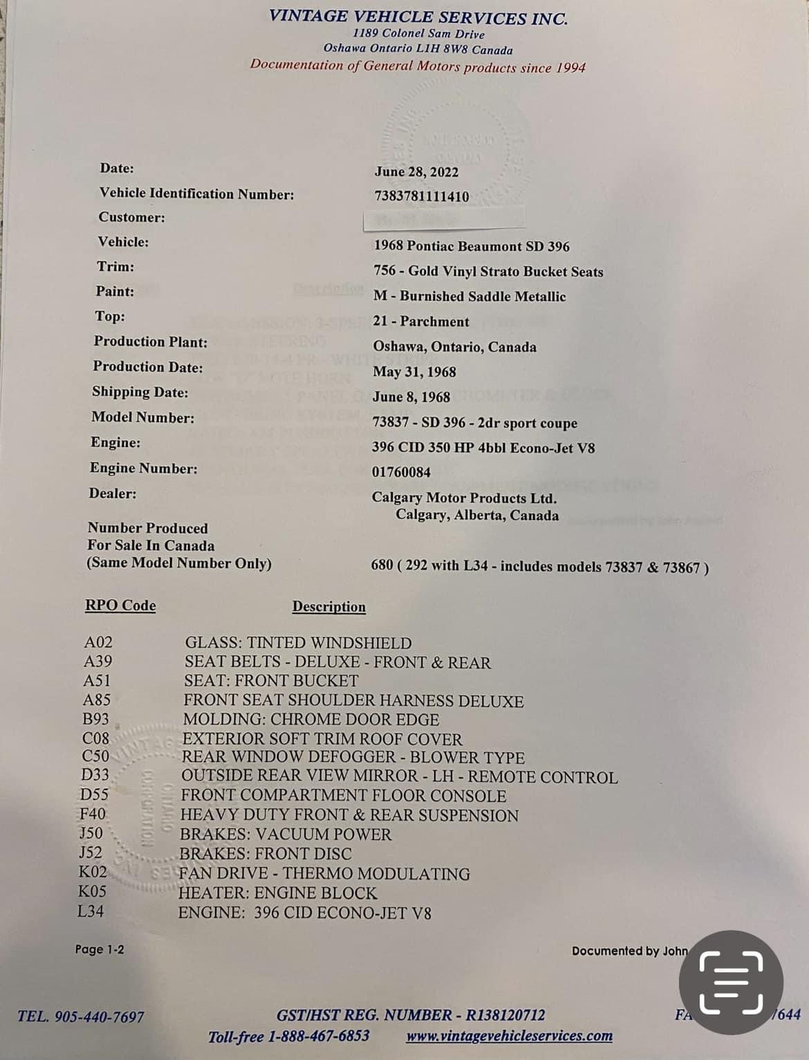 If you're thinking of buying it I would suggest getting your own GM of Canada Vintages services document kit. |