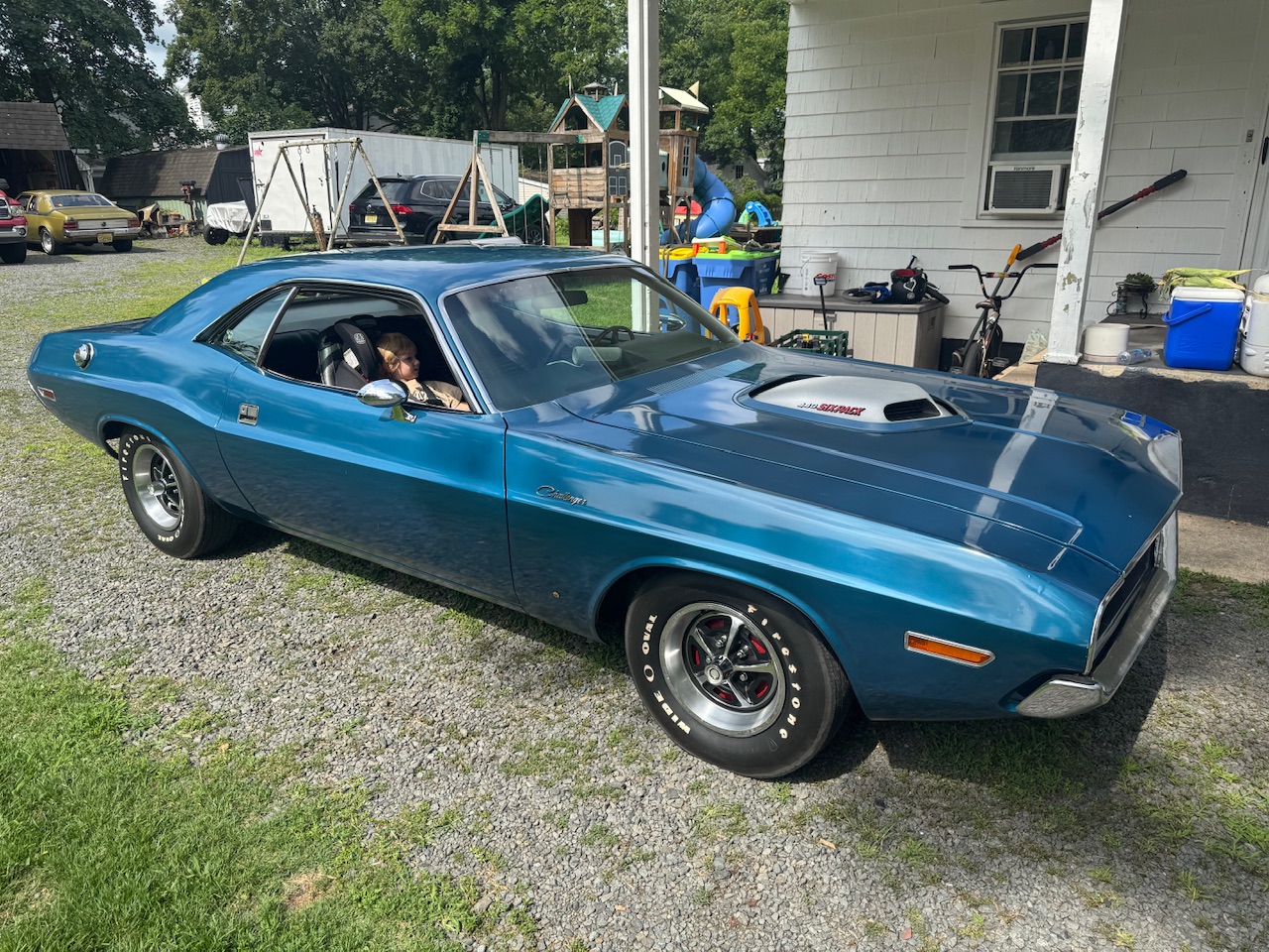 So I have a couple of threads in the AMC area about my cars, but never started a thread on my 1970 Challenger. I think the time to tell its story has finally come and I hope everyone who reads it gets to enjoy it a little. The story begins in October/November of 1969, a 20 year old named David Kartman returned from Vietnam after leaving at 18. He walked into his local Dodge Dealer in Somerville NJ, named Somerville Dodge, and placed an order for a new Challenger. Going through the option list he kept it quite simple. A66 340 performance package, 4 speed, 3.23 sure grip rear because he knew that would change, and an AM radio. Standard black interior and the outside of the car in B7 blue, no vinyl top or other trim was ordered. The car was built January 21st of 1970 according to the broadcast sheet, and soon delivered to Somerville where David picked up his new car, brought it home, and promptly installed 4.88’s in the rear pumpkin and disconnected the speedometer. Leaving for military stuff the following weekend his brother Tommy took the car to Pittsburg(approx 6-8 hours before interstates) and back without David realizing it. Upon his return the car was used for both everyday driving and late night shenanigan's for the next 4-5 years. Sitting at multiple points due to blown up 340’s, the numbers matching block died a hero’s death during a 7k rpm power shift with a rod blowing out the side of it around 1971-72. A service replacement met the same fate a few years later. Around 1975, with the car beginning to show its age, David decided he wanted something faster. Making a call to a local speed shop he purchased a used 440 6 barrel short block, a set of heads, and then spent time at a different local Dodge dealer with a friend in the parts department ordering a ton of brand new replacement parts. These included: New door hinges Replacement Shaker hood Factory Challenger TA left front fender Hemi Torsion bars New R/T leaf springs Set of 3 complete 6 pack carbs and linkage A bunch of new trim parts and replacements for small broken things. Combing local junk yards he found a nice Challenger TA right front fender, and bought a complete Shaker assembly off a wrecked fK5 440+6 Cuda(this hurts my heart). Taking the car apart around 1977, he installed the hood and fenders, cleaned the rest of the rust free car, and gave it a nice backyard respray of B7 blue. The car got pushed into his garage(a double deep 2 car) and then it sat. Life gets in the way and changes your plans, and this is one of those times. David had his first child, money was tight, and the car became a someday project. Unfortunately that someday never came and David Kartman passed away on October 13th of 2019 at 70 years old. At that point David’s 3 children, as well as him brother Tommy, began going through everything, including the 6 vehicles David left behind. His Challenger being parked behind a 1956 Chevy 4 door. Eventually one daughter and her husband came for the Chevy, but the other daughter and son began fighting over who was taking the Challenger. Fast forward a couple of years. It’s now 2021, the town where David lived his whole life is having their annual town wide yard sale, and Tommy has decided it’s time to begin to sell things from the overloaded garage. I should add one more thing here, and I mean this in no disrespectful way. But David and Tommy’s family was a very private churchgoing family. They didn’t socialize much outside of their local church, and while Tommy ended up hanging out often at the bar my dad frequented in the 70’s and 80’s, David kept to himself and no one in the small town spoke much to or of him or their family. My family has lived in the same town that David and Tommy lived for generations. My mom and dad first heard about the Challenger after David passed away, but upon hearing about the family drama I didn’t want to get involved, but since it’s been several years I figured it was worth looking. So the day of the town wide yard sale my dad and I are told early in the day about Tommy selling tools and stuff out of the garage and decide to take a walk down the street and look. When I say down the street, I mean their property is literally about 500 feet down the street on the other side of a cross-street from us. So down the street we walk and find Tommy doing exactly what we were told. He’s going into the garage, removing random stuff and putting it on a table in front of the door. We begin discussing stuff he’s selling and he mentions that the Challenger is still sitting there and he’d love the room back in his garage, since he’s now moved back into the house. Taking the opportunity I ask to look at the car. He agrees, opens the garage door, lets us(my dad and I) in, and closes the door, telling us to knock when he wants it reopened. The pictures are what my dad and I find. And this story will continue in the next post.