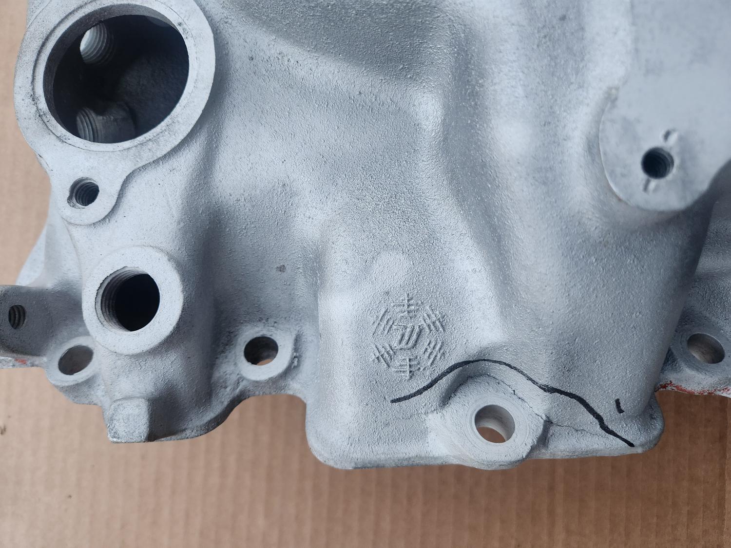 1968 #3933163 aluminum winters square port intake dated i-24-68 cleaned and has one small hairline crack around one outside bolt hole.  Did not leak while on the engine.  Can ship