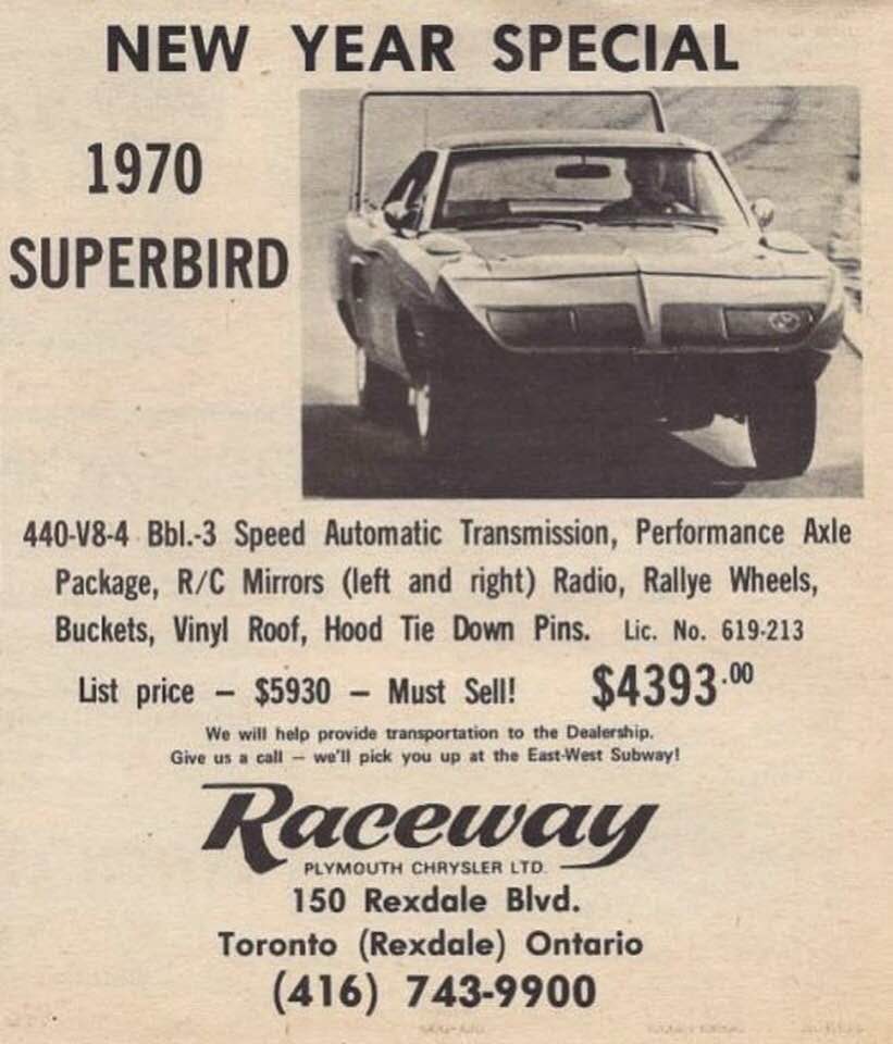 New Year Special likely Jan. ‘71 as Raceway was running Ads for it at the same $ Nov. ‘70. 11/09/70 Ad notes 440 also 11/06/70 price includes refinish in color of your choice? ![]() ![]() ~ Pete .