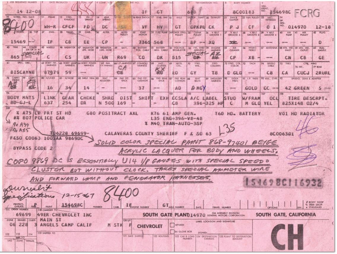 1968 Z/28 Corvette Bronze. Black Hounds Tooth. 02E Los Angeles born 3/13/1968 pnt OO 1969 SS396 Yellow/Yellow 08E Norwood born 8/28/1969 pnt 76E 1970 'cuda Moulin Rouge, 440-6, 4 speed |