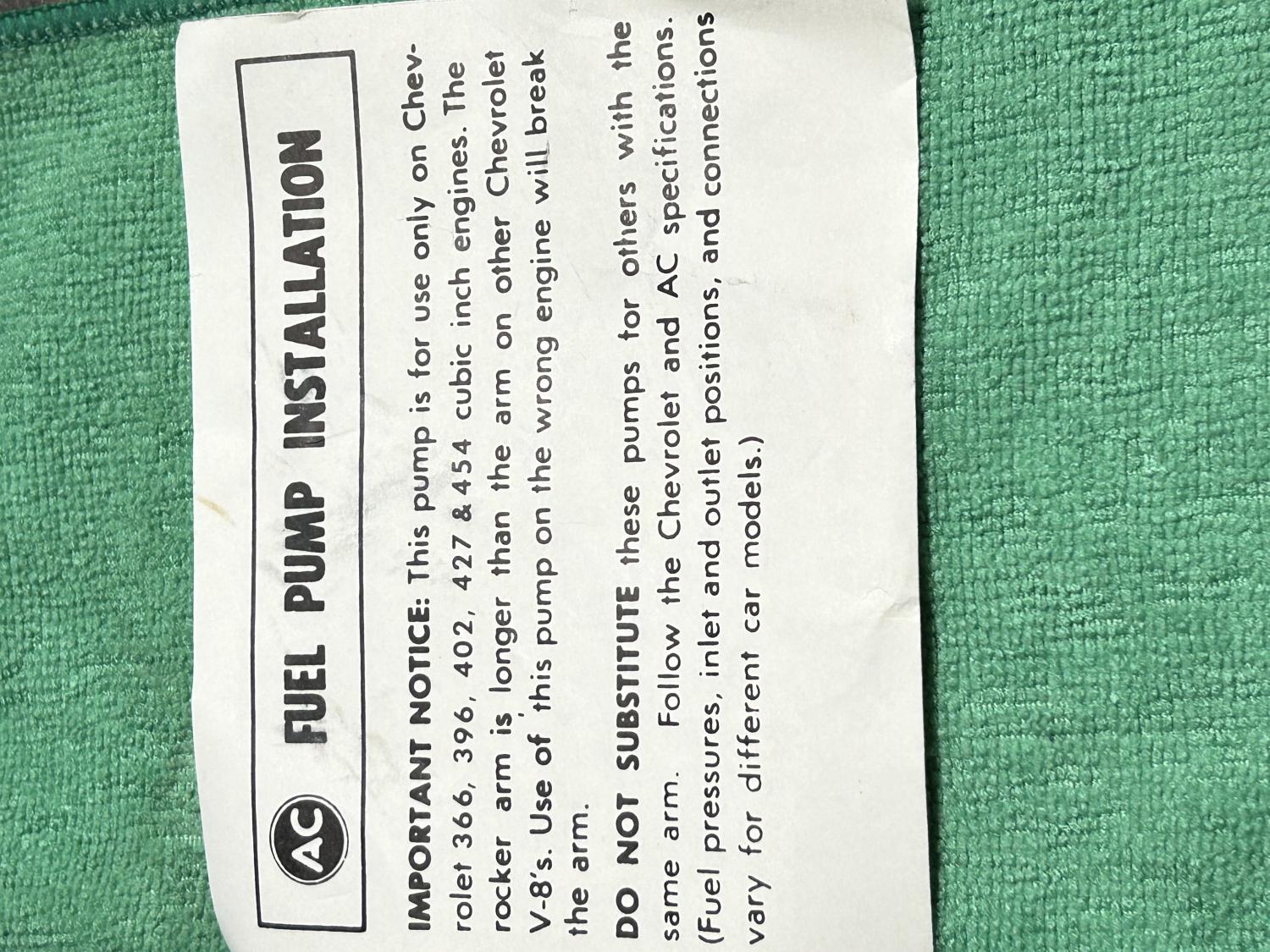 NOS AC logo 40727 fuel pump for 396 402 427 454