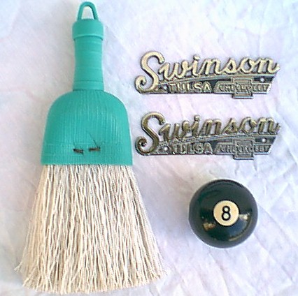 Here is some day 2 Equipment I found today, Wood wheel, 8 Ball shifter, name badges, and one Vintage whisk Broom.