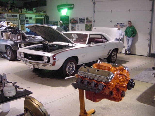 Here's a pic of the Camaro for those of you unfamiliar with it... This car was having some detail work done at the Supercar Workshop at the same time as my 69 SS396 El Camino. I had this pic in with my own photos, so disregard my engine in the foreground! This car is probably my all time favorite L78 Camaro! The color combo is just about as cool as it gets! [img]/ubbthreads/images/graemlins/biggthumpup.gif[/img]