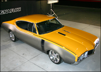 The guy with the 442 got burned in that he didn't get a new engine like most of them do. ![]() [/ QUOTE ] I read a post on the Overhaulin' boards @TLC and the guy's wife said he had a 455 Olds in it, so they didn't swap it out because he had a strong engine. ![]() I like the way they painted the K&N air cleaner frame and valve covers with the exterior yellow. It dressed-up the engine compartment nicely. ![]() Goaty Mac