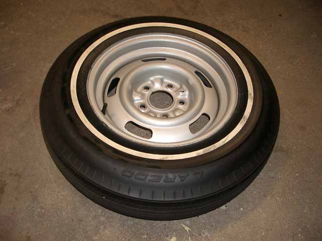 Forgot to mention that the wheels are not original. The guy I bought it from bought the car in 1970 and it had a set of Cragars on it. He just recently swapped them out for the '66 style knock-offs. The original spare is in the tub and has never been down. It's a rally wheel with a Uniroyal Laredo white wall. I'm going with a set of rallys with white walls and a set of bolt-ons with red-lines