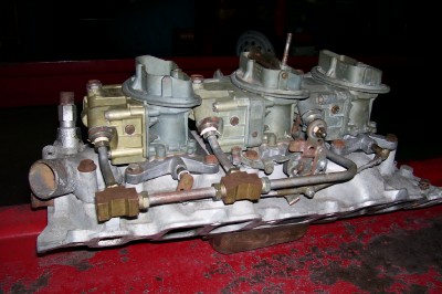 corvette 3x2 intake 435hp square port with carbs needing to be rebuilt, intake is very nice overall with nice cooling pass. heater hose outlet on pass side was repaired years ago/needs to be restored correctly the rest of the intake looks real good, casting # is 3919852 the date is 8-18-67.carb#s front=3902353-eu list-3659 date 782 center carb=3902355-ev list3660 date 742 rear carb=3902353-eu list-3659 date 782 carbs are going to have to be completely restored some parts are missing/loose, the vac. pots are missing , there is a set on e-bay right now for 160.00 buy it now. please call me for any questions or e-mail me at [email protected] asking 1500.00 obo. thanks dave