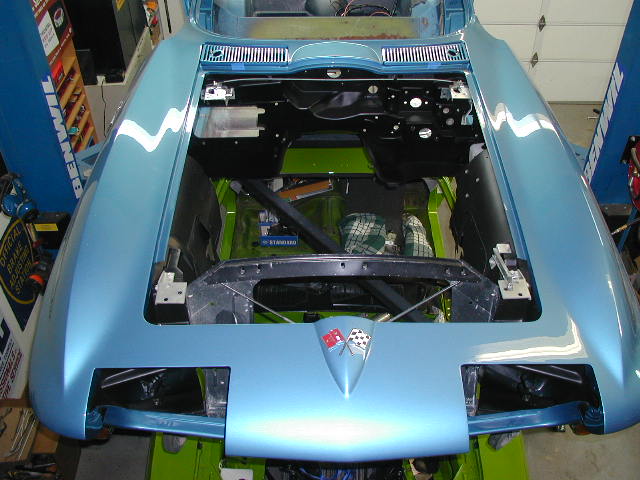 Finish this project or I can complete it for you (at additional cost, of course): 1966 Corvette 427/425 HP Convertible, Nassau Blue / Dark blue leather interior / original black plate California car ( I purchased in 1998 from 2nd owner) matching numbers throughout, 56,287 original miles, two tops, Teak, Tele, Side Exhaust, Tinted glass, Hazard warning lights, Power brakes (J56), Power windows, 4.10 posi, M21, T.I., Power steering, AM/FM with power antenna. Some docs and car has local S.F. bay area history. Without going into extensive detail, here is the current status: Body is off the frame, final paint completed in July 2006, misc. assembly of trim is underway prior to body drop. Paint job is excellent and color matched to the still unfaded original paint hardtop. Body was excellent with perfect alignment/gaps prior to paintwork (body on and off the frame multiple times to get perfect fit with correct factory shims). Frame/drive train was completely rebuilt/restored. Frame was perfect - no rust or damage issues to deal with. In my quest to duplicate factory assembly processes, many suspension parts were left unpainted/bare metal as original. Of course, within a few months they developed that surface rust/haze that is bugging the heck out of me, so my plan is to re-do some of the cosmetic restoration on the frame/drivetrain, etc. before the final body drop. Loads of excellent condition factory original parts for this car and NOS duplicate parts as well (i.e., original side exhaust and complete NOS system as well, original wire harnesses in excellent condition (all) and NOS (all), original dark blue dash pads and NOS, original and NOS glove box door, original white soft top still untouched on frame along with NOS soft top and repro correct dated soft top covers and NOS weather-strips, etc., etc. Lots of work already done: gauge cluster fully restored, seats restored to perfection (original excellent seat covers also included), rechromed original grill, rechromed console, headlight motors restored, etc. Still some work not yet done, although most parts are in excellent condition: radio untouched, teak untouched, tele column not yet restored, power window motors/regulators untouched, radiator tanks removed from center core, etc. Obviously there is much more detail to discuss, but knowledgeable enthusiasts get the basic concept at this point. I started out with just wanting to repaint the car two years ago and did my usual while-you are-at-it carried away body off resto….. It’s a disease…. I haven’t added up my “investment” in this car to date (haven’t spared any expenses along the way) and I really don’t want to know how much I have spent…… This wasn’t being built to be sold. To avoid clogging up this site with unnecessary congestion, feel free to contact me directly on my home at 707-665-0426 (it’s a listed number in Petaluma directory) or email me directly at [email protected] and I will try to respond as quickly as time allows. For those that don’t know me, you can check out my Ebay feedback (Ebay name: hubleyman) and see that I always strive to be open and honest about all my dealings in life. PICTURES: If I was computer savvy I would probably have a website or some way to host a bunch of pictures. For now I’m only able to email some to interested parties……. PLEASE, serious callers only and no picture collectors! My time has been very limited as of late and as much as I love to chat, I don’t have very much extra time to spare right now. PRICE: $90,000.00 +/- cash, cash, cash…… feel free to ridicule me or not, there has to be a price to work with. I’m not willing to give this car away to get another, so it won’t be cheap no matter what….. Thanks for taking the time to read this!!! Charles Clifton |