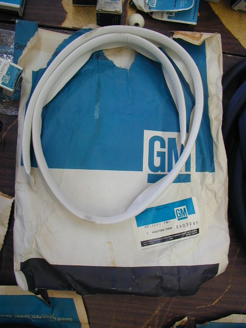 I currently have a NOS part listed for sale on Ebay (starts at $5.00, no reserve) but I really don't remember which car it was for and can't find it in my limtied number of GM parts books. The item is a NOS convertible top front edge seal in white, group number 14.060, part number 8803946. I thought it was for my Pace car, but it could have been for Chevelles, or early Corvettes, or even some of the non-Chevy ragtops I've had over the years. If anyone has an accurate application for this item I would greatly appreciate the assistance and will be happy to update my auction listing with the correct information. Thanks for all your collective knowledge sharing !! Charles