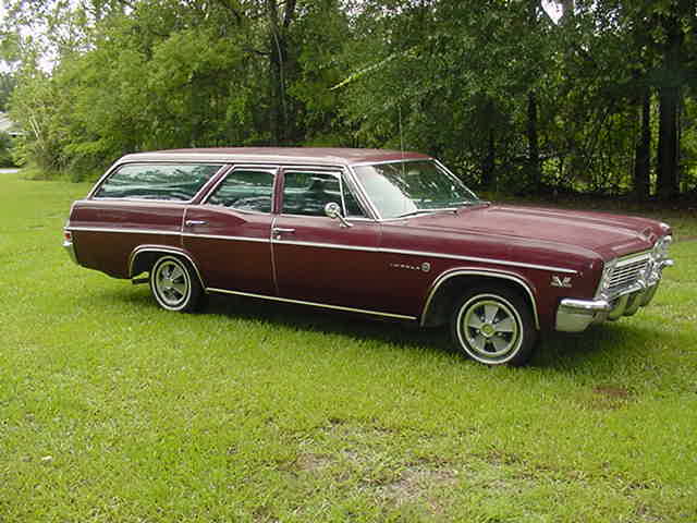 I am offering for sale my 1966 impala station wagon matching #396. This car has alot of factory options, 396, turbo 400, PS, PB, Air, 12 bolt posi, door edge guards, day night mirror, pass mirror, bumper guards. This car still has most of its original paint along with original interior. Car has been stored, but is in in very good running condition. Paint on car will need to be repainted but this car is solid with minor rust hole on drivers side rear (about the size of a quarter. I have alot of paper work including broad cast sheet. Asking price $9000.00 pm me or call at 912-337-2647