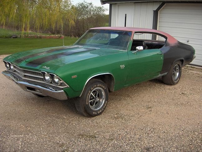 I will try to attach a photo.It was before the car had the quarter and roof fixed. There also was a day two rear lowering kit installed. I have since removed it and put the original style springs and shocks back in it. There is also a photo on Team Chevelle. I have been told there are two other Rallye green 1969 Chevelles. They are both 325 HP car. From all the info. I have seen this is the only SS 396 L-78 Rallye green 1969 Chevelle. I believe there were around 86,307 1969 Chevelle made.My numbers are from the Chevelle SS restoration guide. If you have any other info 1969 Rallye green Chevelles please send me a e-mail at [email protected] Thanks Doug |