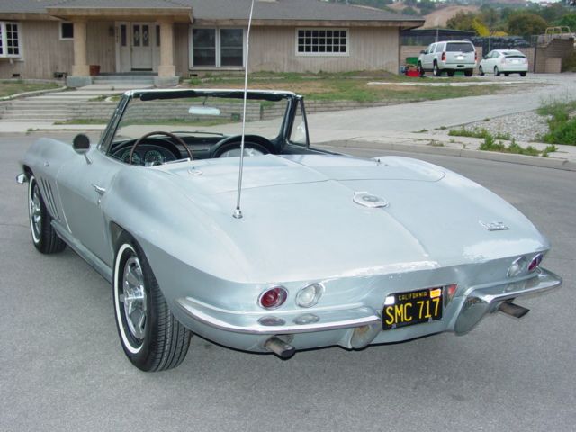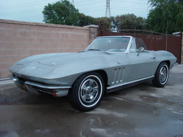 Pulled this out of a local barn. Black plate Calif. car. 300hp, powerglide, windows, steering, brakes, soft top omly. 75% original Silver paint with original black std interior. Original drivetrain with A.I.R. intact. I cleaned it up and got it running and put new tires on it. Please get in touch with me for more info and description.