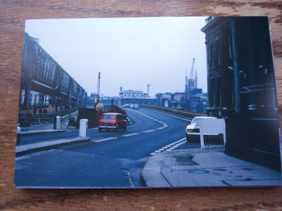 On a London Street with the new London Bridge being built in the background.