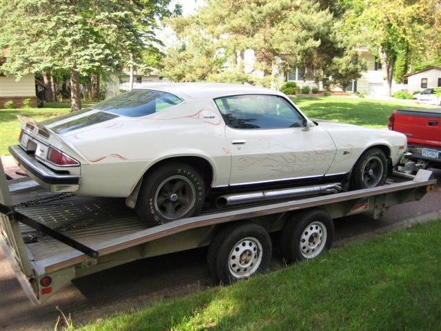 these pics are the way it was. now its getting done right. i've since bought an original fly eye air cleaner from Mr.427 an msd ignition that Joel "Mr.MOTION" Rosen helped me pick out, a walnut wood grip steering wheel, 4 new Cragar S/S wheels, Mickey Thompson Indy Profile Tires, a set of the original SUN gauges, MOTION small block valve covers and emblems, HOOKER universal sidemounts which all four pipes are connected to the 4 header primaries, 4.56 rear gears,a centerforce dual friction clutch, a Motion 74-77 front air dam, a complete interior,traction bars that replace the shock mount plate,a nos set of gabriel hi jackers still in box, I'd like to find a Holley 3 barrel carb at a good price.