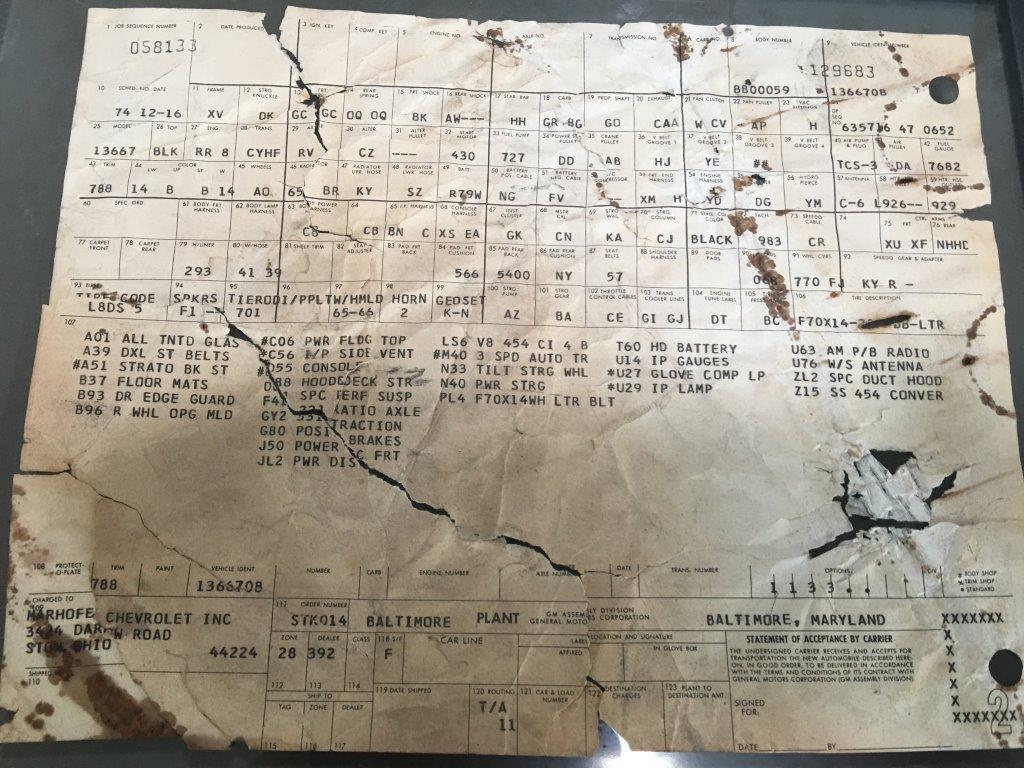 The seller had it on Craigslist for about 2 weeks before the new owners snagged it. Ohio seller had mistaken it for an LS5 but knowingly sold it as an LS6 after reviewing the build sheet.