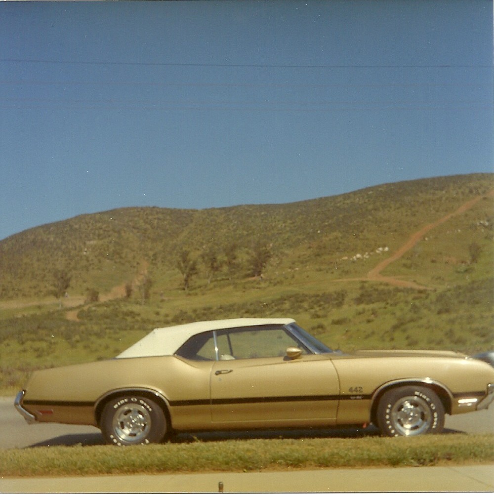 An old convertible I just finished restoring a 1970 olds 442, picture can be seen on the restoration site where the car was done. Picture is dated 4-70 one month after the car was purchased. Would like to get a set of the wheels the original owner bought. Lee