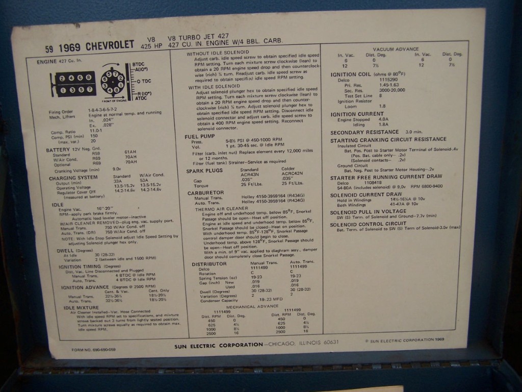 This latches on to the side of a Sun Engine Analyzer. I got it from an old muffler shop in Chicago who was about to throw it out. This box contains all tuning specs for all engine makes from 1958 to 1972. $250 plus shipping [email protected]