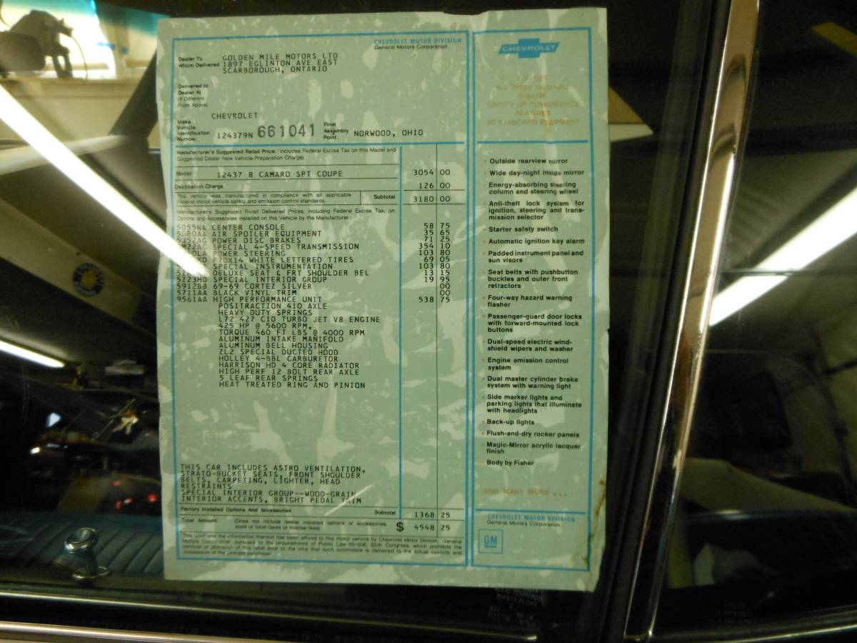 Subject VIN 124379N661041 Reported rebody as info @ 1'st link below but any ever ads seem to tout originality? Copo Connection paperwork also "sensitive restoration" mentioned in description at 2'nd link. [img]<<GRAEMLIN_URL>>/hmmm.gif[/img] ~ Pete - SYC 2012 thread... https://www.yenko.net/ubbthreads/ubbt...;Number=476278 Carpictures? link... http://www.carpictures.com/1969-chevrolet-camaro-copo Hemmings Ad link... https://www.hemmings.com/classifieds...o/1845485.html ----------------------------------------------------------- VIN 124379N661041 - Rebody? Trim Tag Body # NOR35147(2-4?) Camaro COPO 9561 AA Cortez Silver - 711 Black L72 M22 D55 D80 G80 G84 PL5 U17 ZL2 Shipped June 25/69 Delivering dealer - Golden Mile Chev/Olds Toronto -----------------------------------------------------------