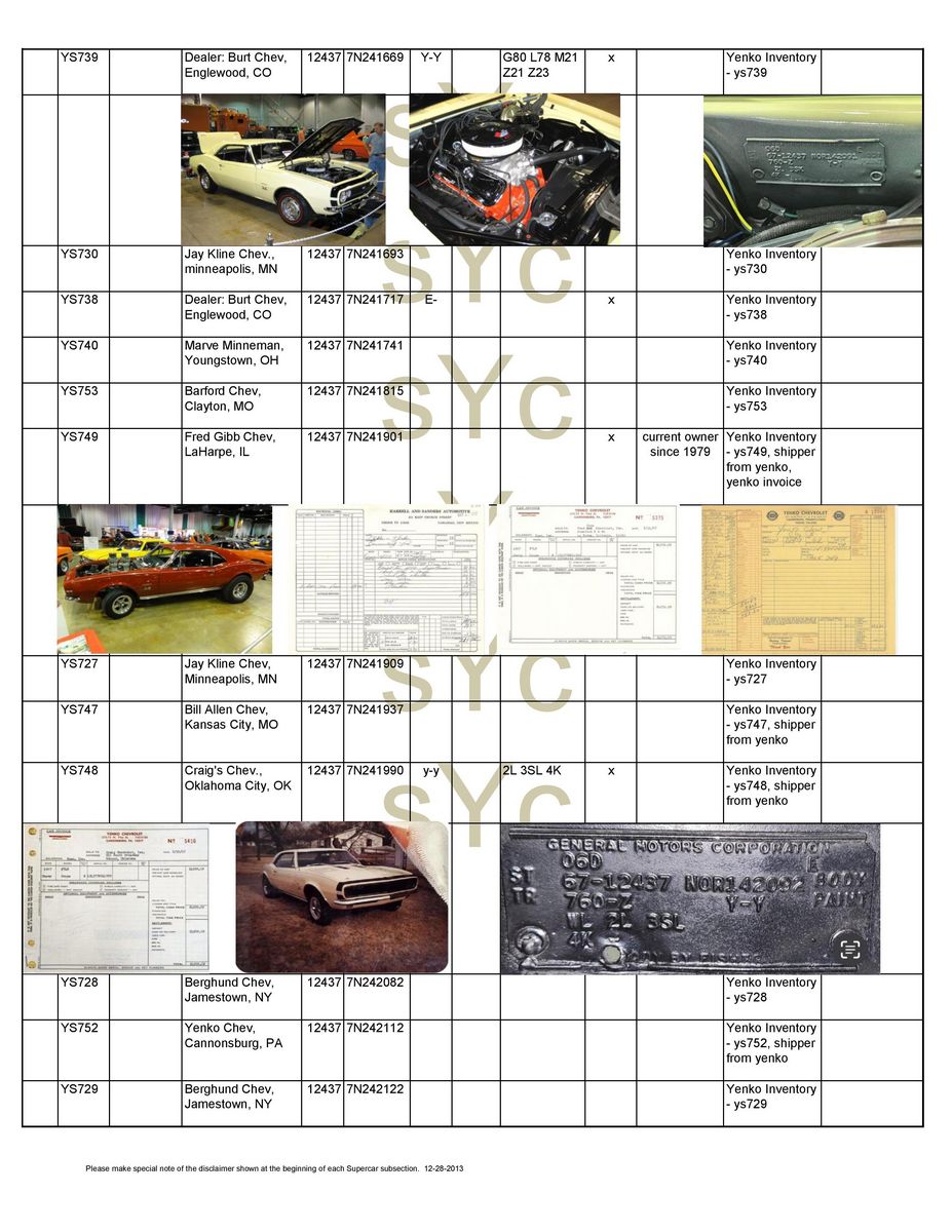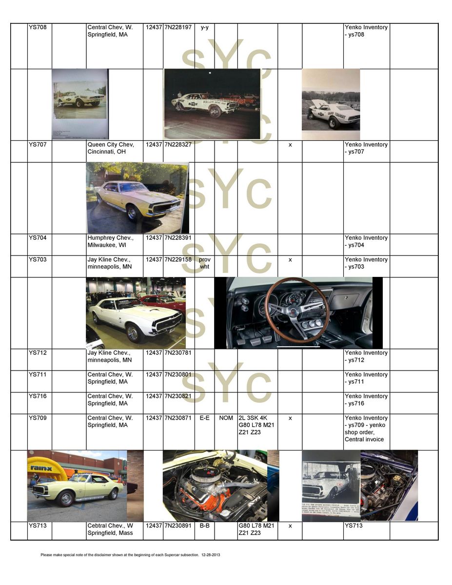 My 4K car is 7N230691 on this list. I first saw it on a list in a Muscle Car Review mag I think 2011. Warren D. said he had no info on it and it was not shipped to Yenko but to Jackshaw in Euclid, OH. Ed C. said he had no info but I was told he was the person who first made the list.