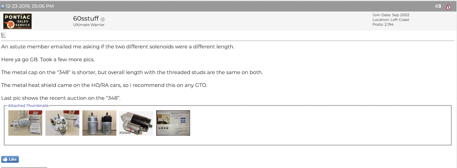 Does anyone know the solenoid number for a 1969 gto w 389 engine . Starter is 1107355