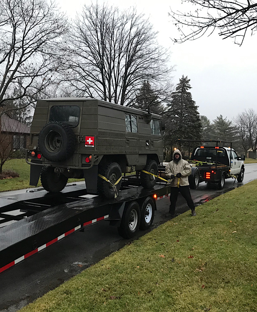 I need recommendations to move a '71 Pinzgauer (tall Austrian military vehicle ~78" tall).