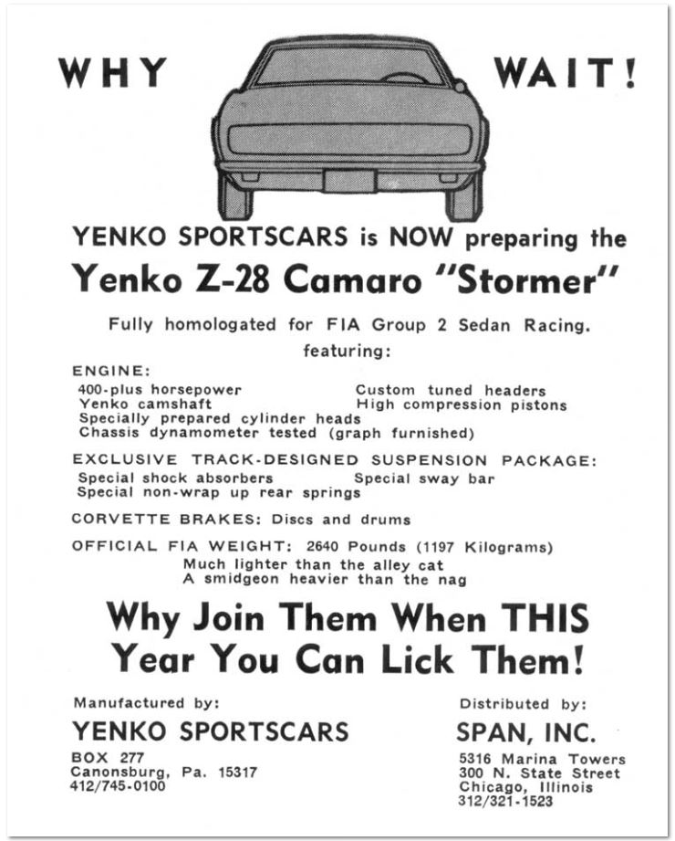 Wow, in that add, the Stormer Z/28 was quite a jump in base price compared to a Yenko.