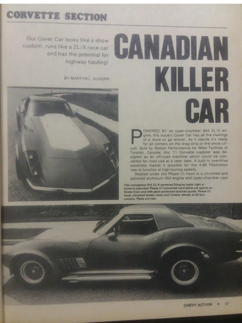 If so, would you mind scanning the pages of the article on the Canadian 454 Killer Car on the front cover and posting? I've found the first page of the article but would like to see the entire article. |