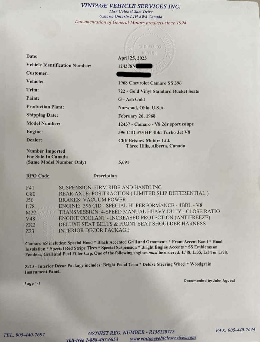 Lightly restored back to original race trim The VVS docs are very nice too. L78 M22 gold on gold. |