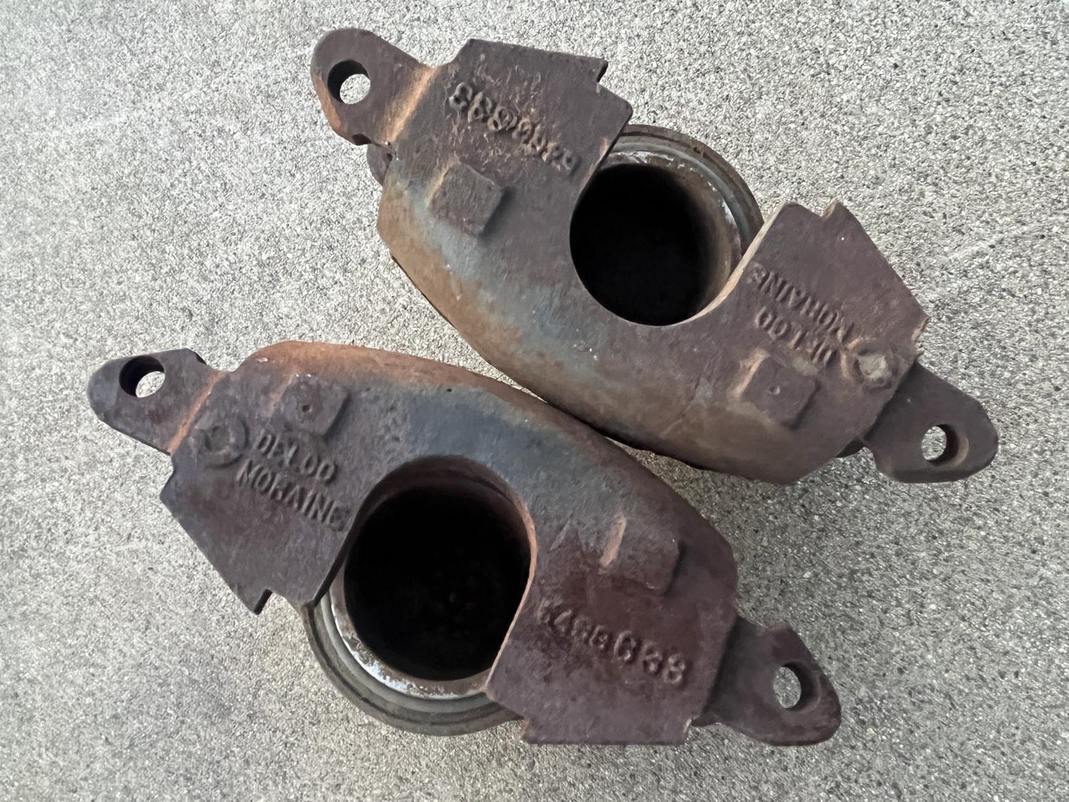 Perfect for an Q4 build date in either 1968 or 1969 of course. These were removed earlier last year and sat apparently, but obviously are cores and should be rebuilt - no issues evident. There's even a remnant of one of the blue plastic bleeder screw caps! Original! 180.00 PPG shipped to the 48. Cheers all, Anthony |