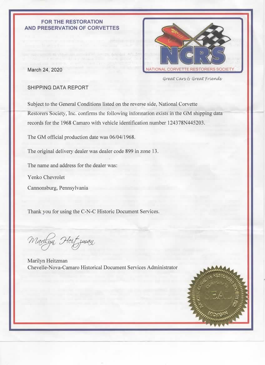 Super cool being both Yenko sold plus having such a positive Joel letter, even better also best of luck if you can uncover anything of its history. For those who may’ve missed it, here's a link to when it was on Hemmings… https://www.hemmings.com/stories/los...72ZybRrZr6kUlg 124378N445203 ![]() ~ Pete .