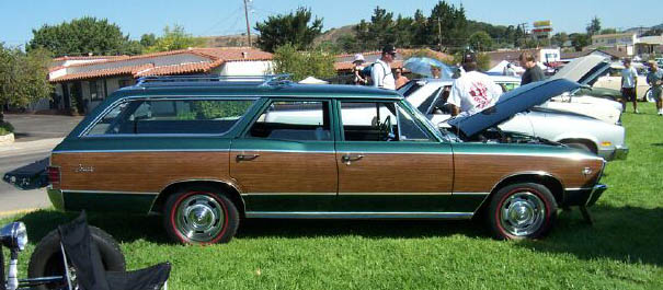 I was at a local car show over the weekend and saw a car I have never seen before. I thought some of you may enjoy getting a look at it. It is a '67 Chevelle wagon with the factory L79 and four speed option. I've seen this combo in El Caminos and Chevelle coupes but never before in a wagon. Apparently the original owner bought the car to use as a tow vehicle for his Mopar drag car. The story goes that the Mopar broke during the season and the guy ended up racing the wagon for awhile, rather successfully too. Supposedly it fell into the hands of some kids who beat it up pretty good and let it get in poor shape but it is looking pretty good now! The car was originally gold and it sounds like it will be put back to that color in the next couple of years.
