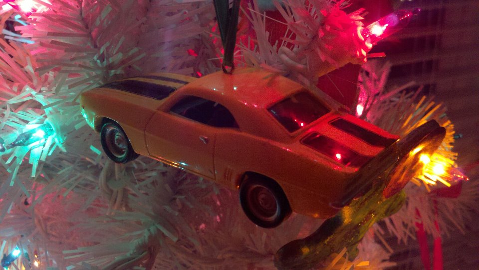 sadly my tree ornaments (with many cars) did not get unpacked this year. I do have these cool 67 RS SS Camaros on a train car that used to circle the tree for many years. [img]<<GRAEMLIN_URL>>/biggthumpup.gif[/img]