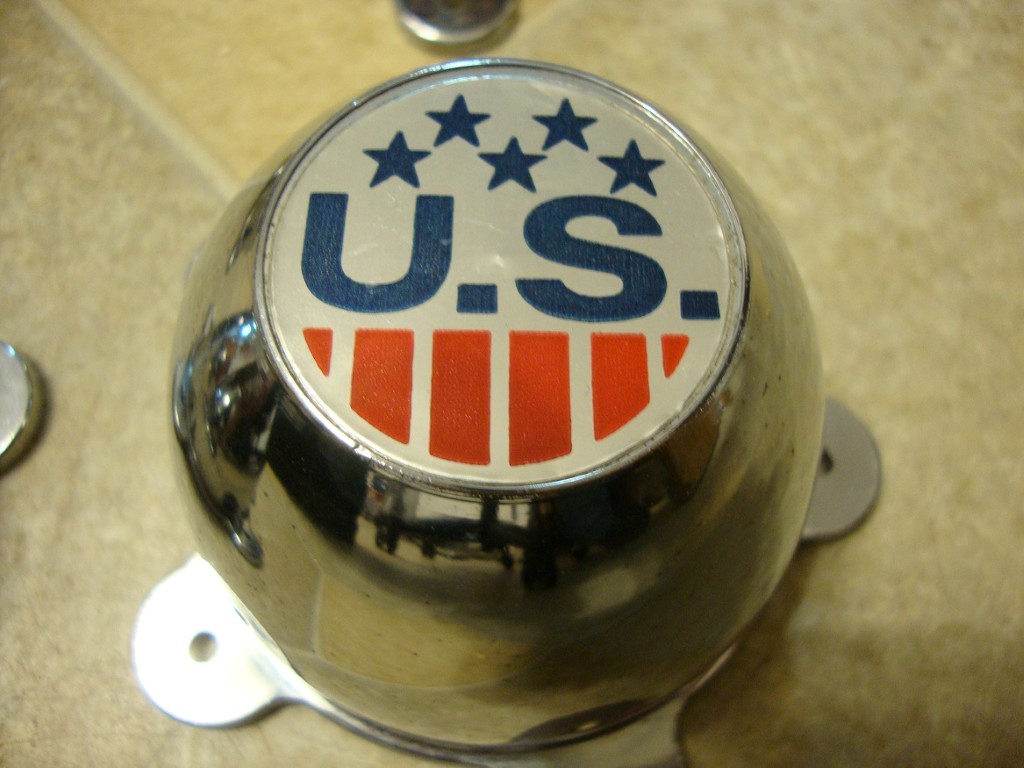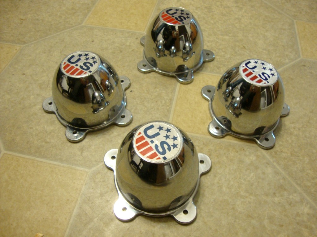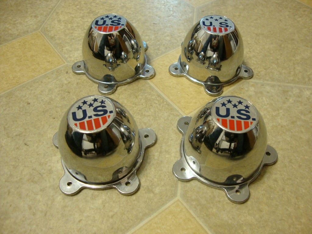 Nice set of US wheel centercaps for torque thrust style wheels. 3 of these are NOS and one has witness marks on the mounting holes so I guess it was mounted at some point in time but not for long. Nice shape. Good chrome and US stickers are very nice. $135 for the set shipped or ? -Matt <span style="font-weight: bold">SOLD SOLD SOLD SOLD SOLD SOLD!</span>