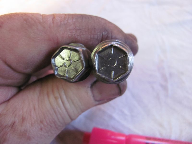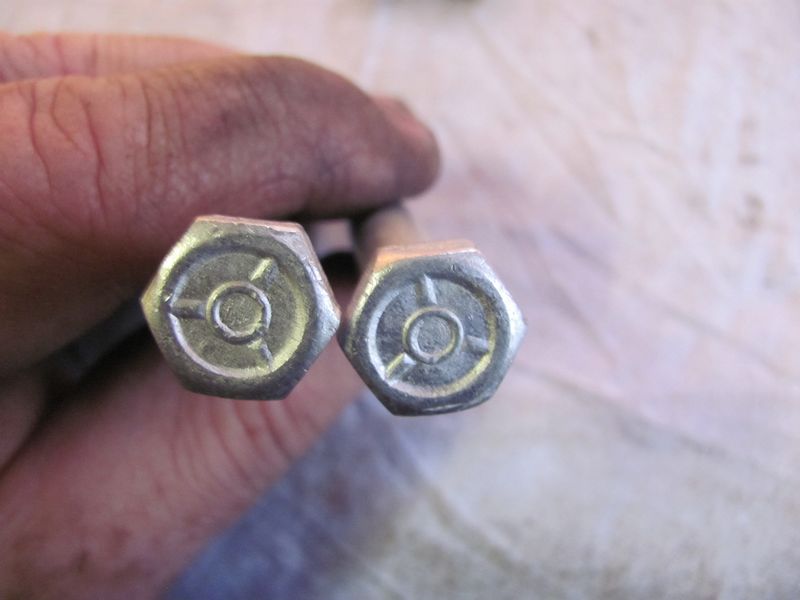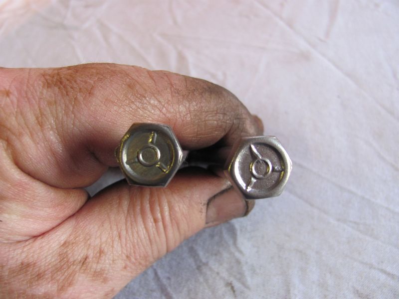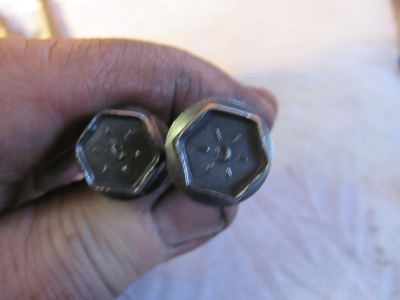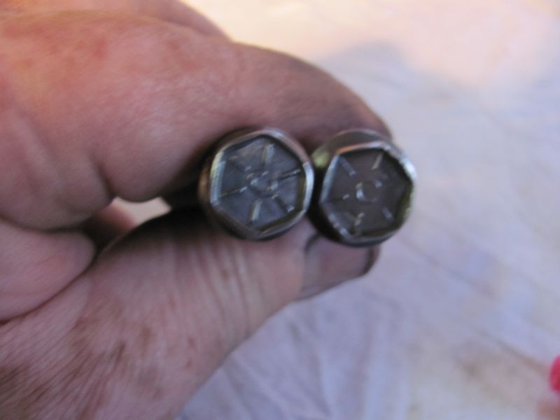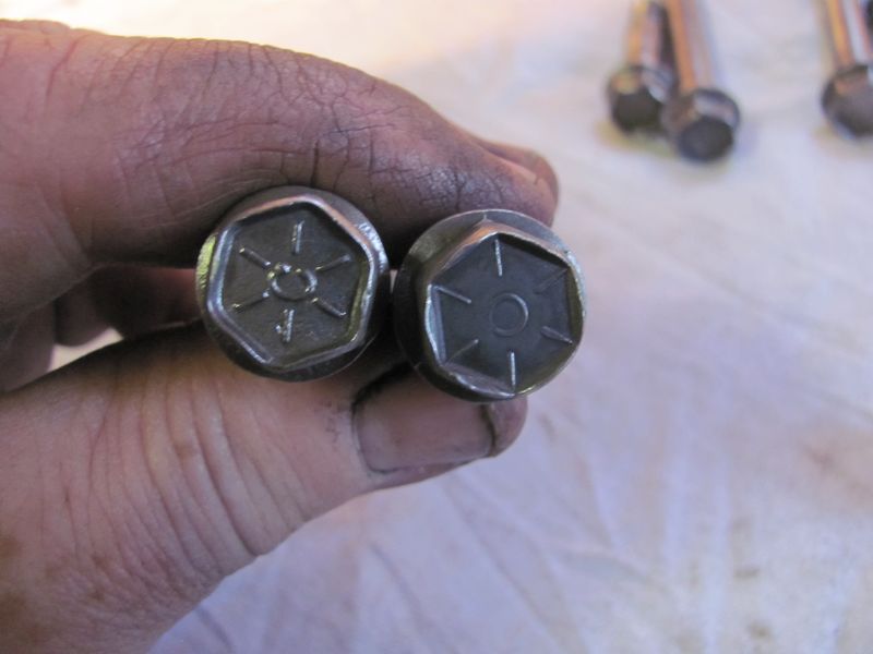 66-74 396 427 454 and 67 up small block 11" starter bolts unrestored 60.00 per set shipped to the lower 48 stated(2 sets) The repros have a line or cross in the center of the O.
