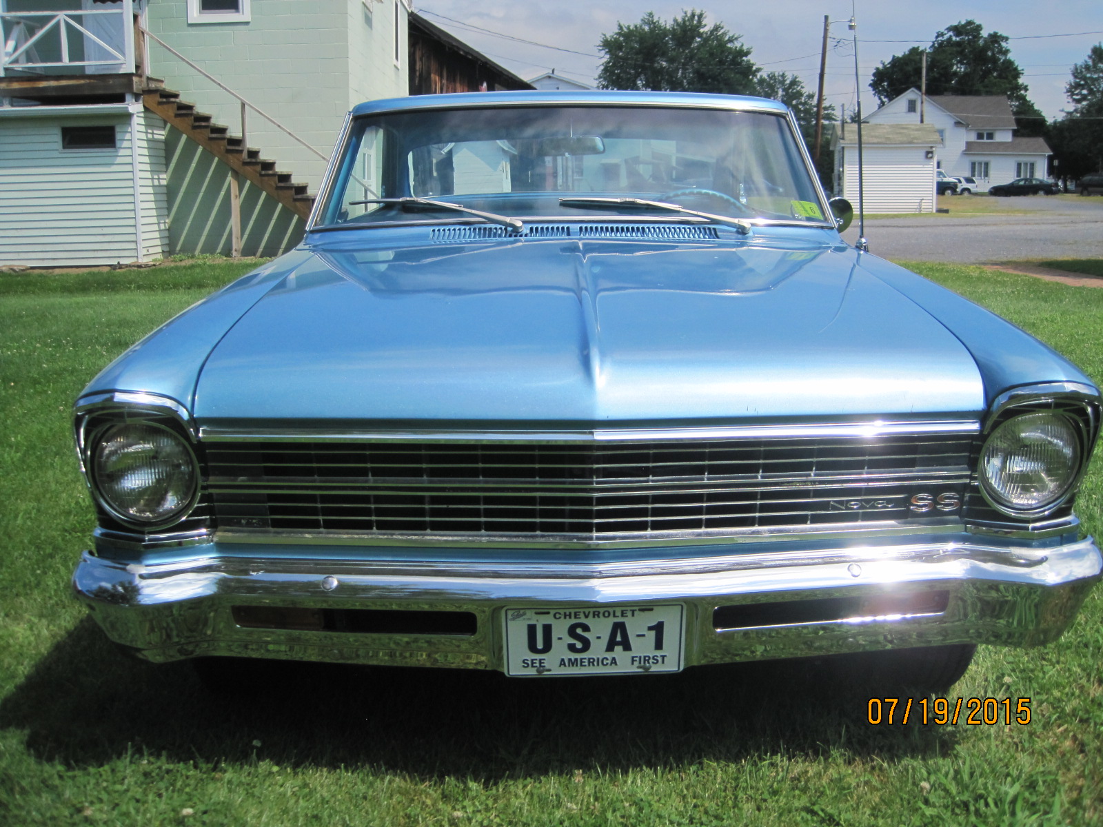 This is a 67 nova real ss v8 car that was purchased from the orig owners estate,it has a super clean body and alot of neat orig items since it is a lo mile orig,the car runs and drives like new with its #s matching 283 and pwr glide trans u can drive it anywhere worry free.The interior is all orig with the exception of the front seat covers(have orig)and with 18,000 miles it has all 4 orig shocks,orig trunk splatter,orig spare and jack(never used)orig carpet and chrome,glass,etc.I have the orig buildsheet and ncrs report on the car,the underside of the car is super clean and rust free as it should be,the car dose have a 30yr old closed door basic repaint with some chips,dings,small bubbles on the hood but still looks great orig a no radio car and it was added sometime afterwards,also has fact p/s asking $26,500 or possible trades and cash $$ thanks.570-854-0896