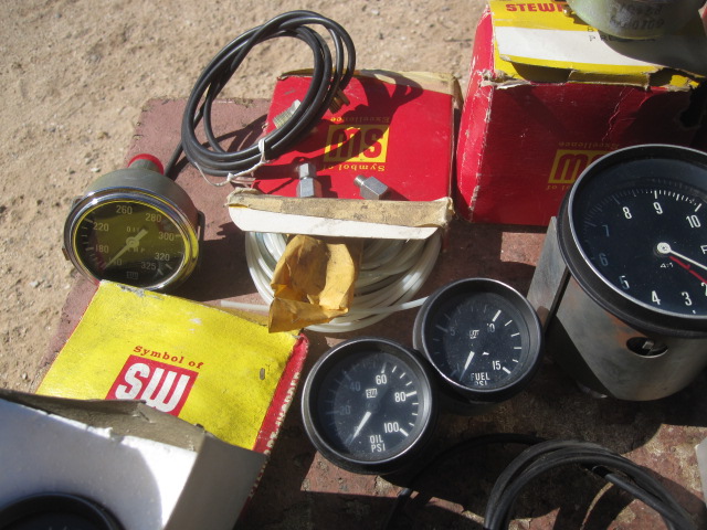 Selling an assortment of Stewart Warner guages (16), brackets, parts, and pieces all. Some still have boxes whats left of them some do not. There is water temp, oil temp, oil pressure, fuel pressure, vacuum, amperes, and a 10K tach. There is some install kits, brackets, lights, and misc. Price is 350 shipped USPS lower 48 USA. Thanks, Larry. 520-349-2337
