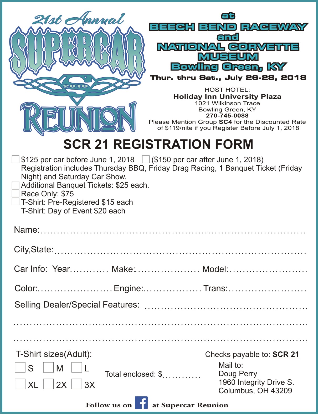 The date has been set for SCR21 (2018). Same venues as in the past in Bowling Green, KY. Meet and greet at Holiday Inn Thursday the 26th, Racing at Beech Bend Raceway Park and banquet at National Corvette Museum on Friday, July 27. Indoor show at museum on the 28th.